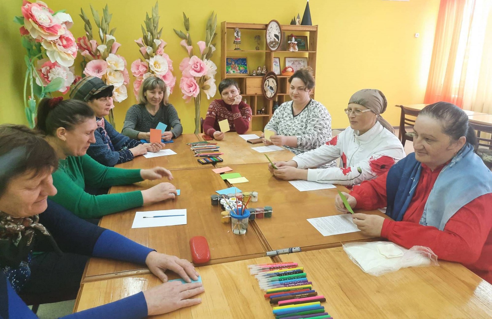 З бацькамі былі праведзены практыкаванні, накіраваныя на аднаўленне псіхічнага стану, зняцце стомленасці, а таксама на раскрыццё творчага патэнцыялу. Удзельнікі сустрэчы з задавальненнем пагрузіліся ў творчую атмасферу, упрыгожваючы ўзорамі геаметрычныя кампазіцыі і сюжэты.