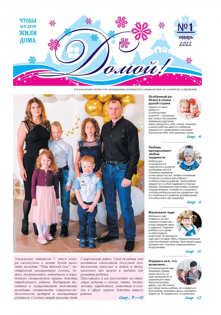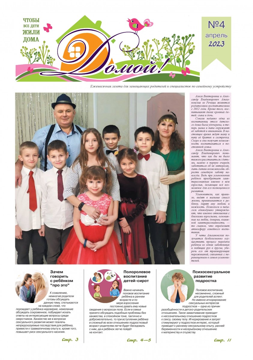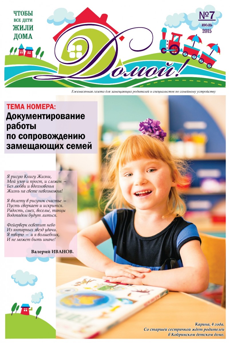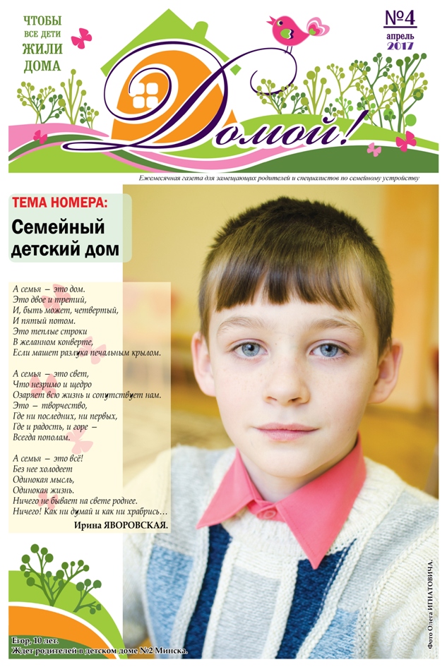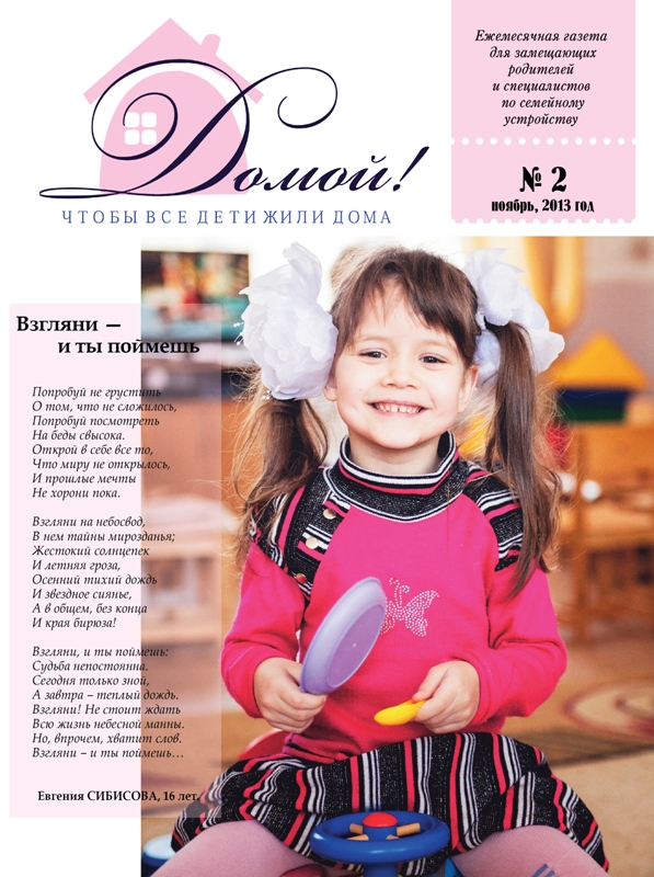 ГАЗЕТА «ДОМОЙ!» станет для Вас надежным другом и помощником в решении самых разных вопросов, связанных с процессом воспитания приемных, подопечных, усыновленных детей.