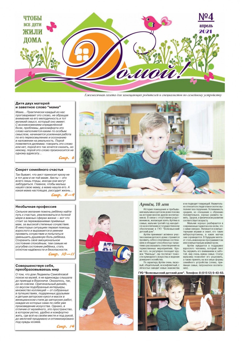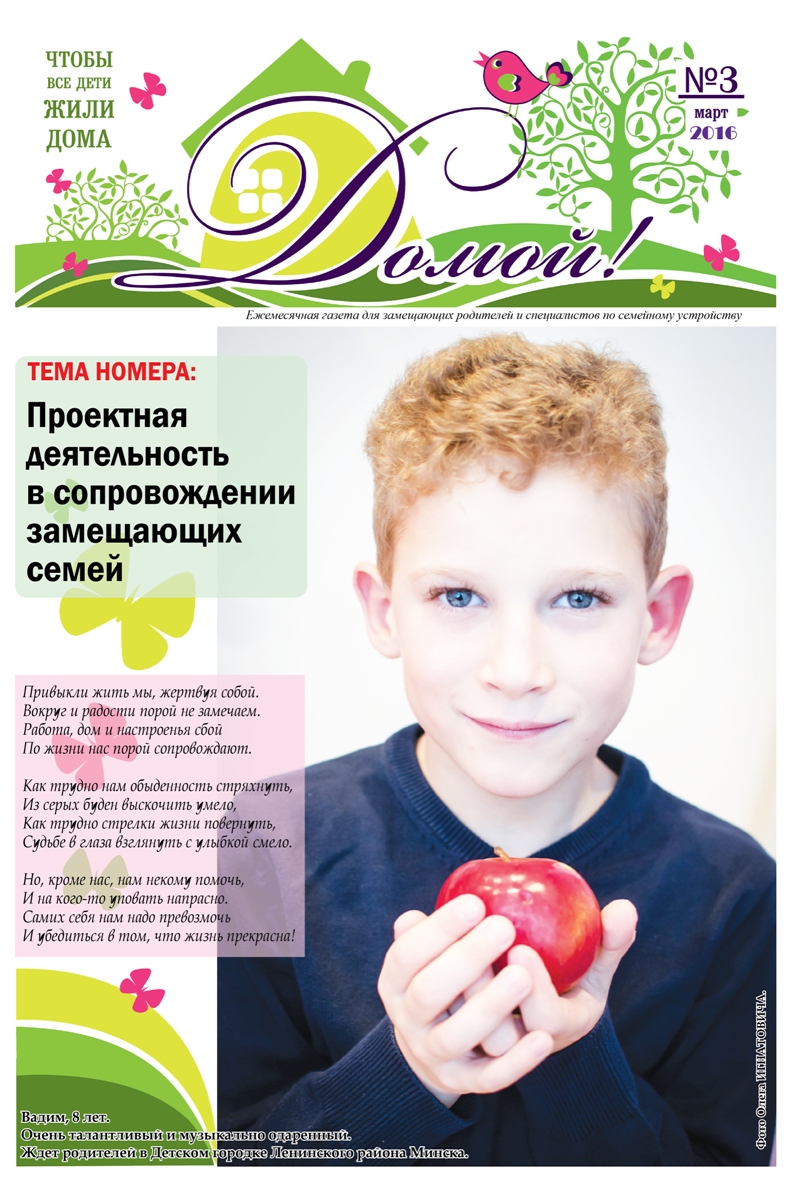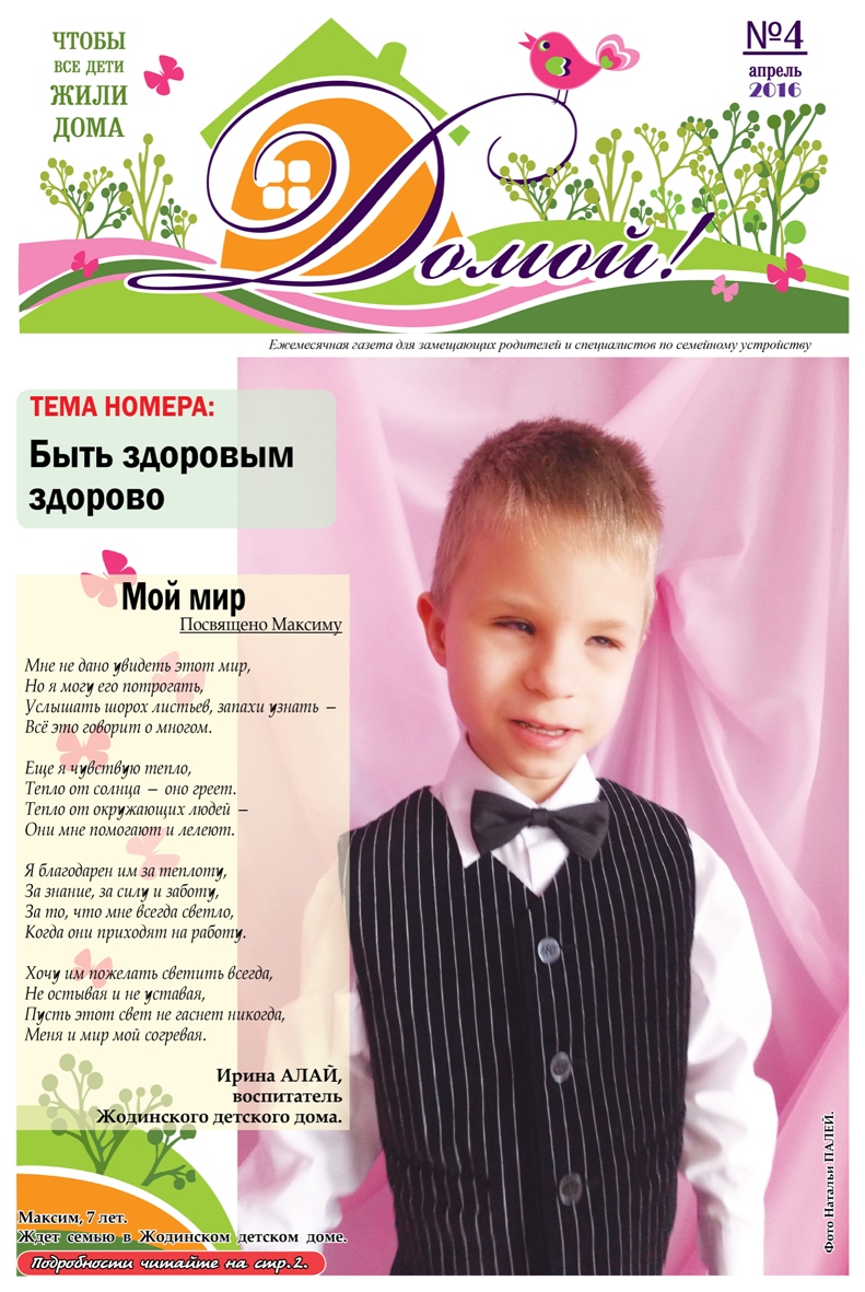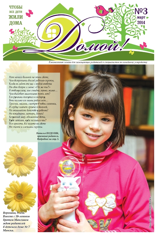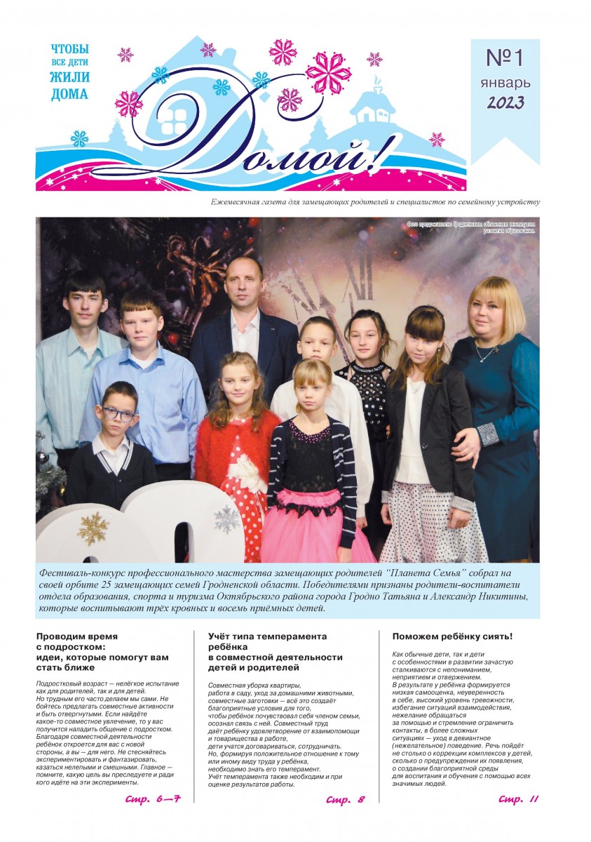 ГАЗЕТА «ДОМОЙ!» станет для Вас надежным другом и помощником в решении самых разных вопросов, связанных с процессом воспитания приемных, подопечных, усыновленных детей.