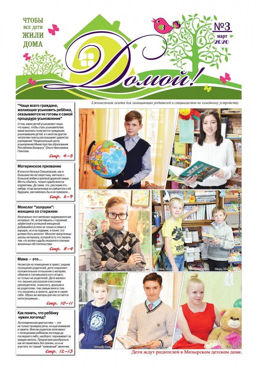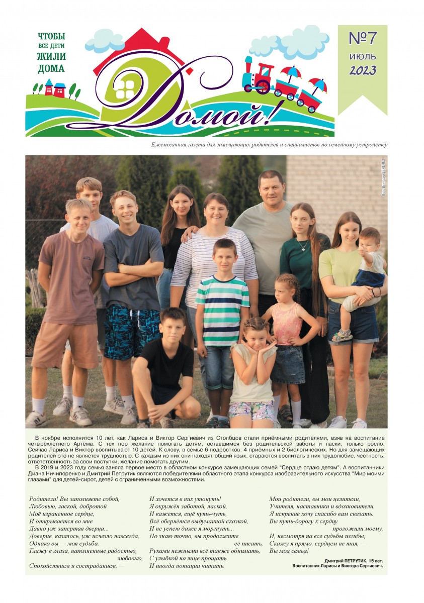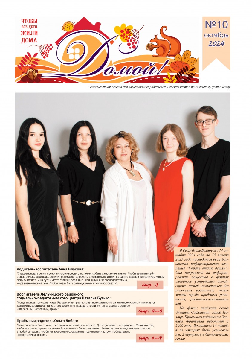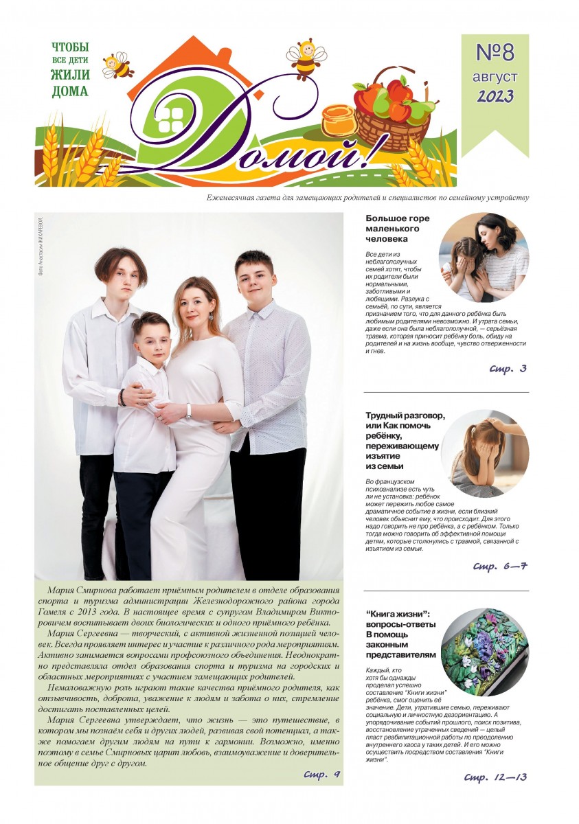 ГАЗЕТА «ДОМОЙ!» станет для Вас надежным другом и помощником в решении самых разных вопросов, связанных с процессом воспитания приемных, подопечных, усыновленных детей.