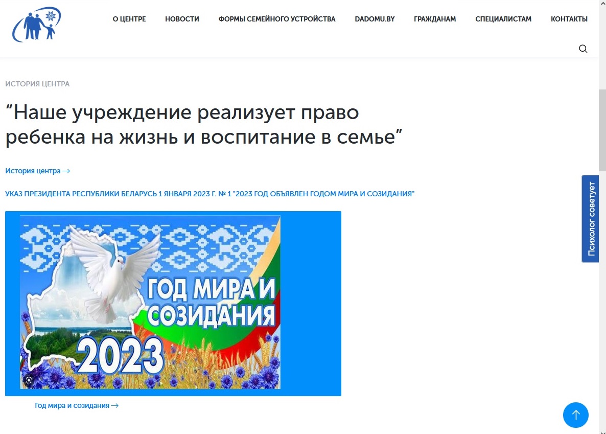 Мероприятия учреждения «Национальный центр усыновления Министерства образования Республики Беларусь», посвященные Году мира и созидания
