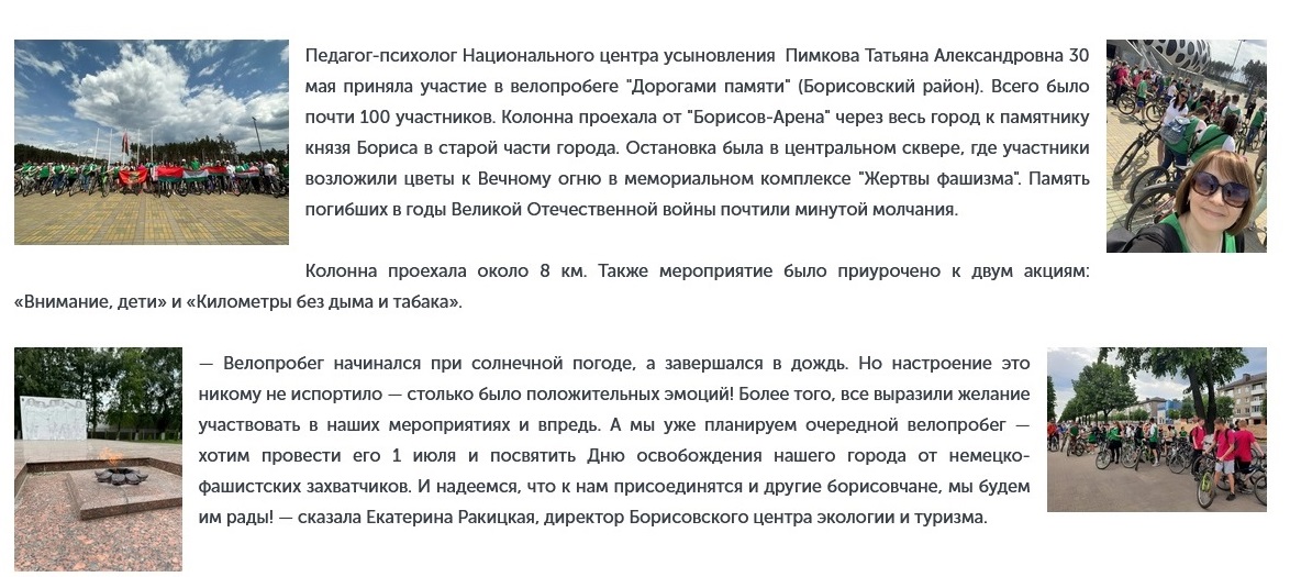 5. Участие работников Национального центра усыновления в велопробеге по знаковым местам, посвященным Году мира и созидания. «Дорогами Памяти»