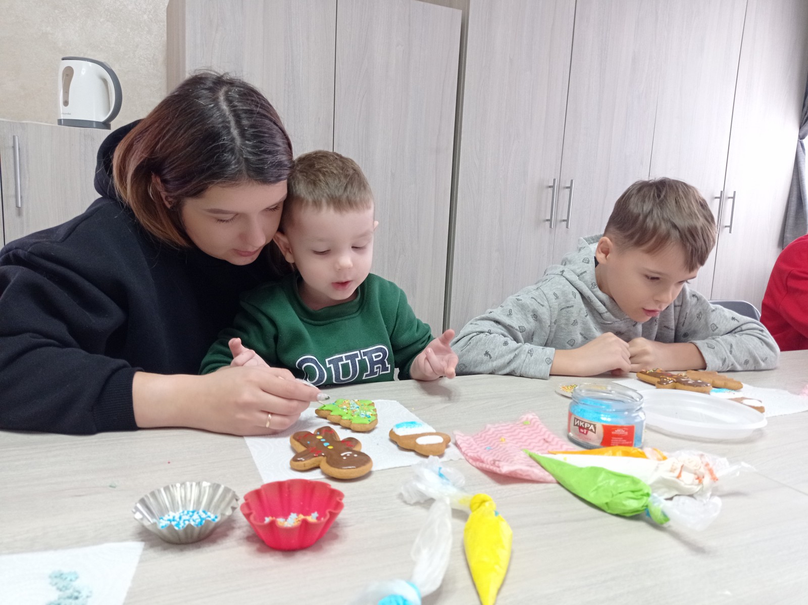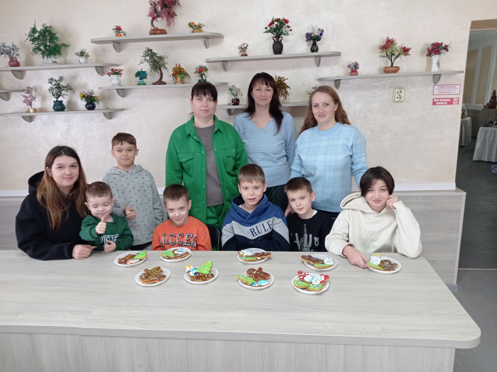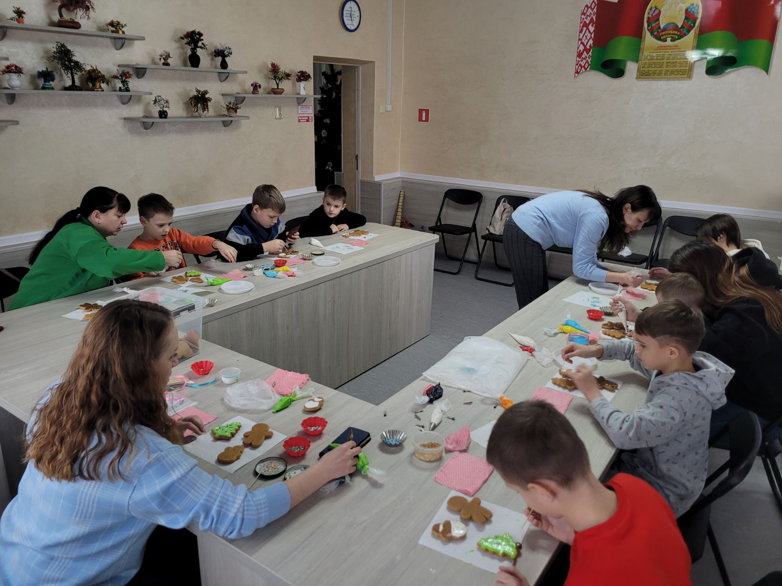 4 января в Смолевичском районном центре ремесел прошел рождественский творческий мастер-класс по росписи авторских пряников «Имбирная елка». На занятие были приглашены воспитанники опекунских семей района вместе с родителями.