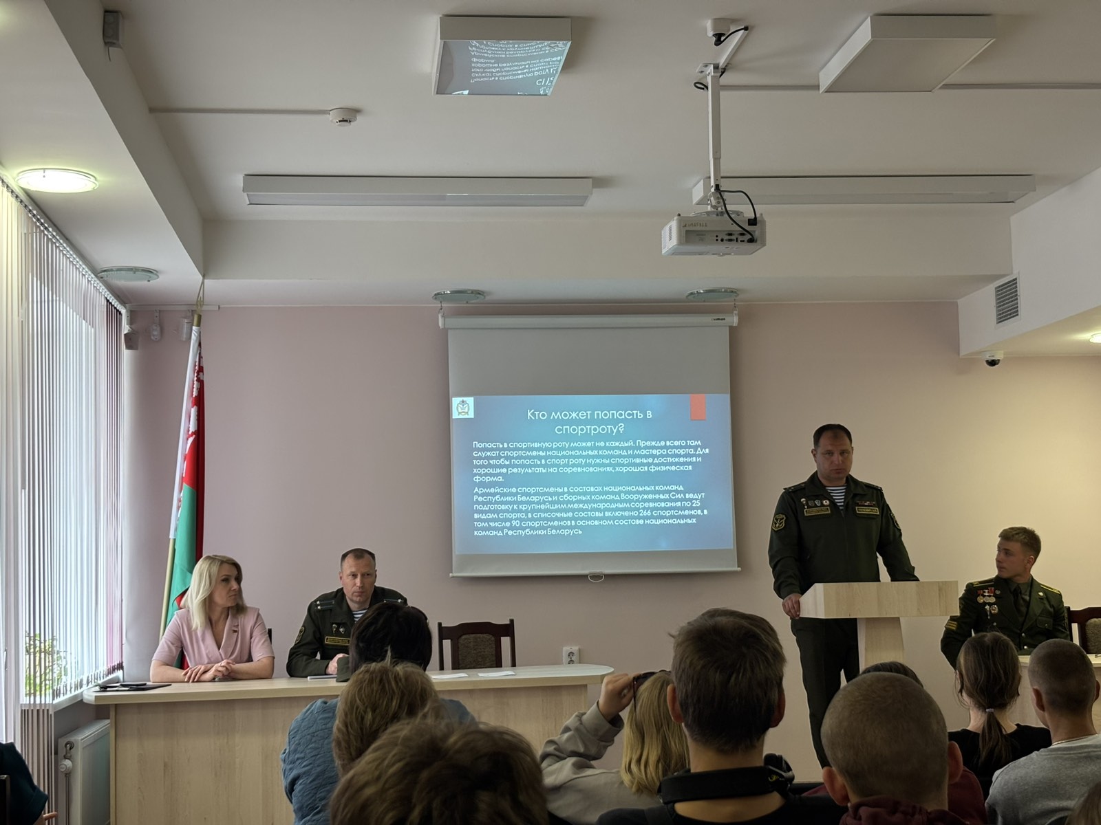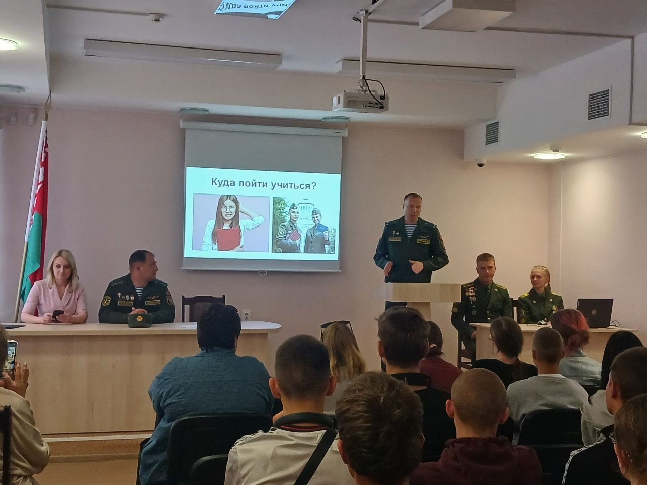Учащиеся узнали о различных направлениях образовательной и профессиональной военной деятельности, задали вопросы курсантам  Военной Академии Республики Беларусь, получили советы и консультации.
