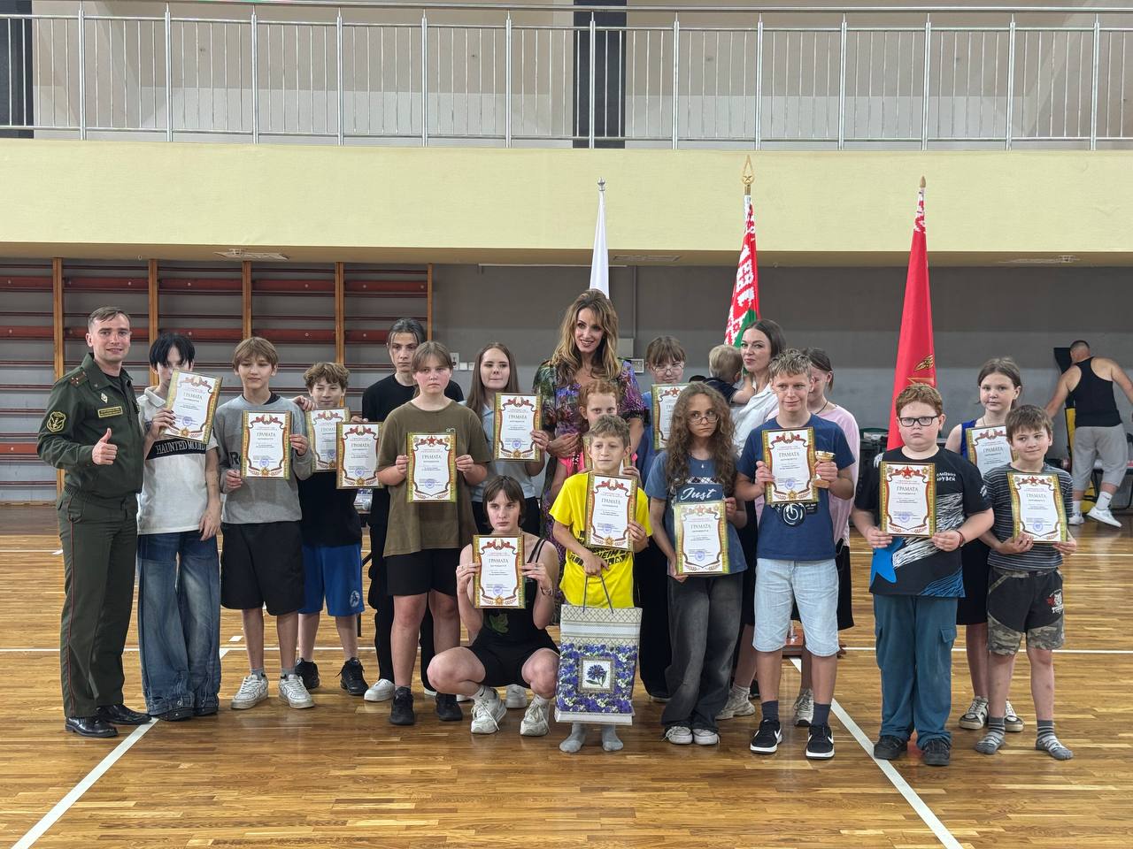 В завершение акции, помимо заслуженных грамот и кубков за участие в спортивных состязаниях, ребята получили школьные принадлежности, необходимые для успешного старта в новом учебном году. Эти важные подарки были предоставлены Спортивным комитетом Вооруженных Сил Республики Беларусь.